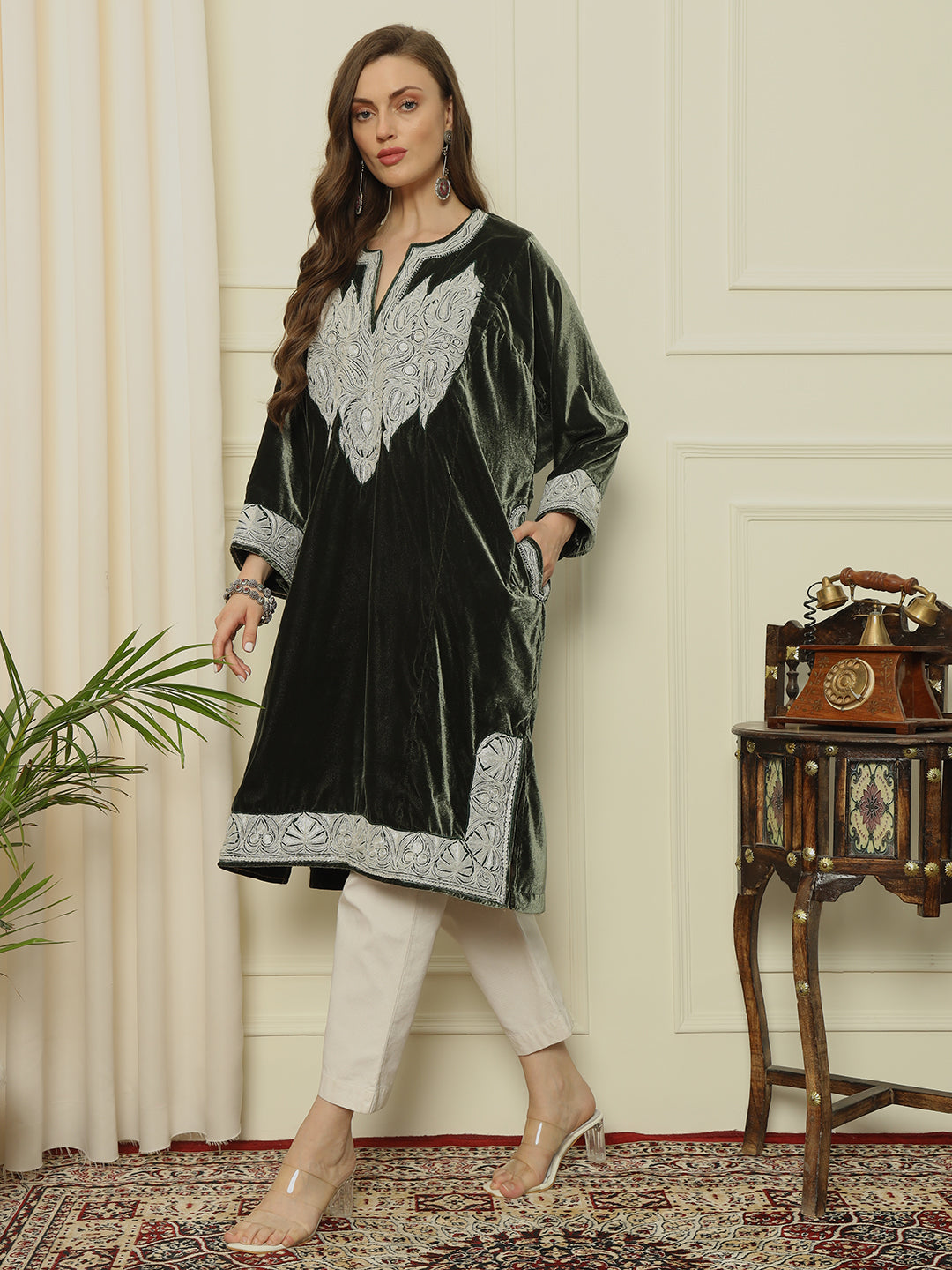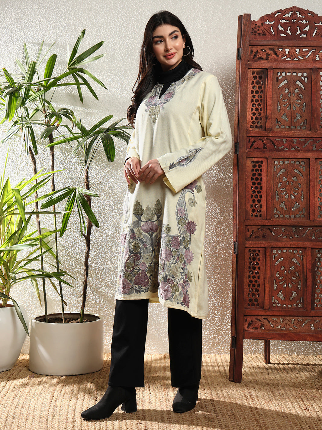 Black Cotton Kurti with Mint Green Floral Embroidery – THE DAL SERIES